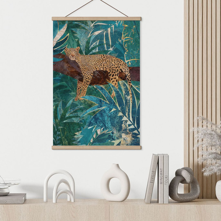 Stoffbild Leopard im smaragdgrünen Dschungel - Manovski
