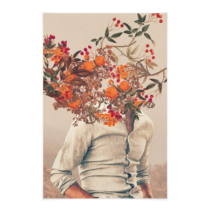 Frank Moth ist ein Künstlerduo aus Griechenland. Die Künstler Eleftherios und Marianna widmen sich den Themen Liebe, Demut und Nostalgie. Sie erstellen hauptsächlich Postkarten im futuristischen Look mit digitaler Collage. Ihre Werke werden in vielen Kunst- und Designpublikationen und für weltbekannte Unternehmen verwendet. Zu ihren Kunden zählen die New York Times, Adobe und Mr. Porter. Neben futuristischen Retro-Motiven erstellen sie auch surreale Blumenporträts. Dieses Porträt zeigt einen Mann in einem Hemd, dessen Gesicht von einem prächtigen Blütenzweig verdeckt wird.