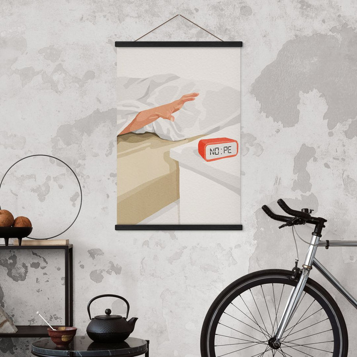 Die optional erhältliche Posterleiste aus Naturholz verleiht dem Bild eine elegante, skandinavische Note und bietet eine einfache und flexible Möglichkeit, Ihre Wand zu gestalten. Die leichte Textur des Stoffes hebt die warmen Farben hervor und verleiht dem Bild eine zusätzliche Dimension.
