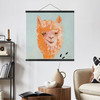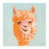 Dieser quadratische Stoffdruck zeigt das fröhliche Porträt eines Alpakas in leuchtenden Orangetönen, das sofort eine warme und einladende Atmosphäre schafft. Der weiche pastellblaue Hintergrund kontrastiert harmonisch mit den leuchtenden Farben des Alpakas und verleiht dem Bild einen beruhigenden und dennoch lebendigen Look.