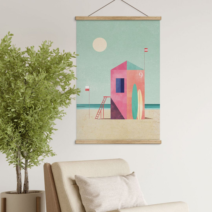 Henry Rivers verbindet in diesem Stoffbild die Leichtigkeit des Strandlebens mit einer minimalistischen und modernen Ästhetik. Das weiche Material und die harmonische Darstellung machen das Bild zu einem stilvollen und natürlichen Blickfang in deinem Zuhause.
