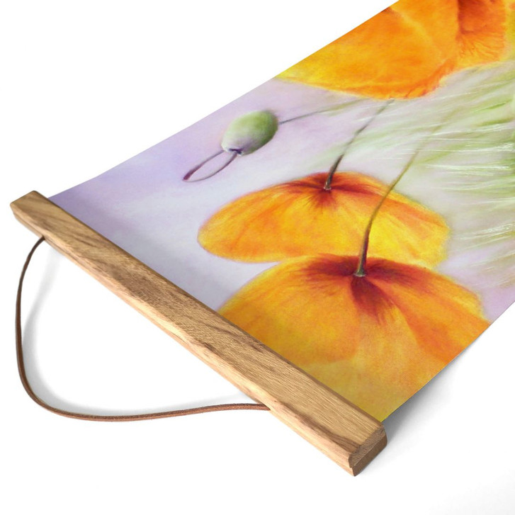 Setze mit diesem Schmuckstück schillernde Farbakzente an deiner Wand! Die Mohnblumensaison hat begonnen! Die prächtigen Blüten in Orange- und Rottönen wetteifern darum, wer am Feld am hellsten strahlen kann. Die Knospen lassen auf noch farbstärkere Blüten hoffen. Gestalte deine Wand mit dem floralen Textilbild im attraktiven Panorama-Hochformat und kreiere deine persönliche Lieblingsecke im floralen Design!