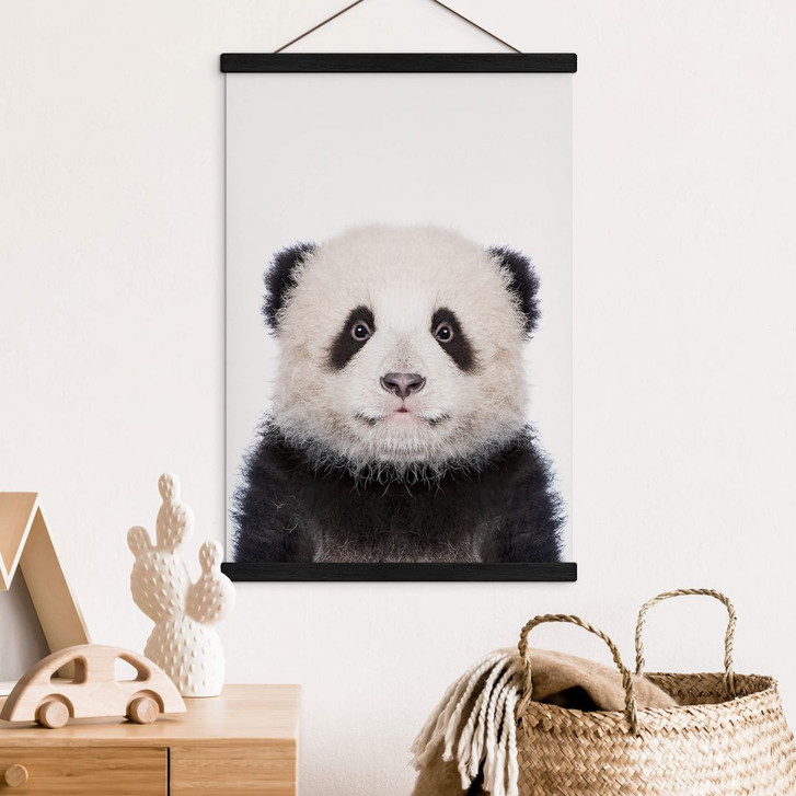 Unsere Auswahl an Kinderzimmerdekorationen ist vielfältig und bietet jedem Kind eine einzigartige Inneneinrichtung in einer Vielzahl von Farben, Formen und Materialien. Die kindgerechten Deko-Elemente fördern die Fantasie der Kleinen und unterstützen die Kreativität. Die liebevolle Fotografie von Sisi & Seb zeigt einen kleinen Panda. Das schwarz-weisse Tier mit dem flauschigen Fell blickt mit seinen dunklen Knopfaugen direkt in die Kamera.