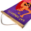 Mit diesem Motiv hat Raissa ein farbenfrohes Motiv geschaffen, das perfekt für Pasta- und Weinliebhaber ist. Es zeigt eine rothaarige Frau, die genüsslich Spaghetti isst. In der einen Hand hält sie ein Glas Rotwein. Dazu passt der humorvolle Spruch „Eat Spaghetti, no regretti“. Der moderne Druck verbreitet gute Laune in der Küche oder im Essbereich als Stoffbanner.