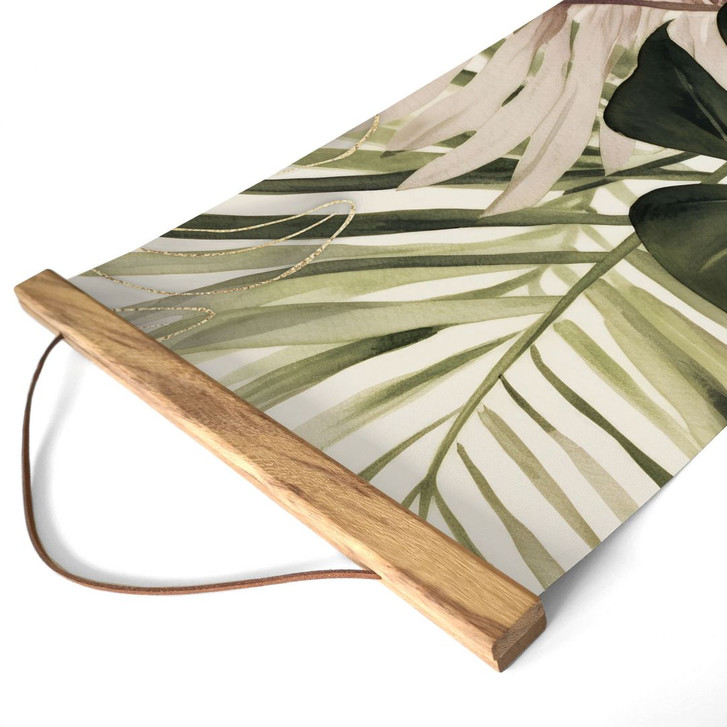 Lass dich von der tropischen Gelassenheit inspirieren und schaffe eine Oase der Entspannung und Eleganz in deinem Zuhause. Dieses Stoffbild im Panoramaformat ist die ideale Wahl für alle, die eine flexible, stilvolle und hochwertige Wanddekoration suchen. Geniesse die Harmonie von Natur und Design, die dieses Kunstwerk in deinen Alltag bringt.