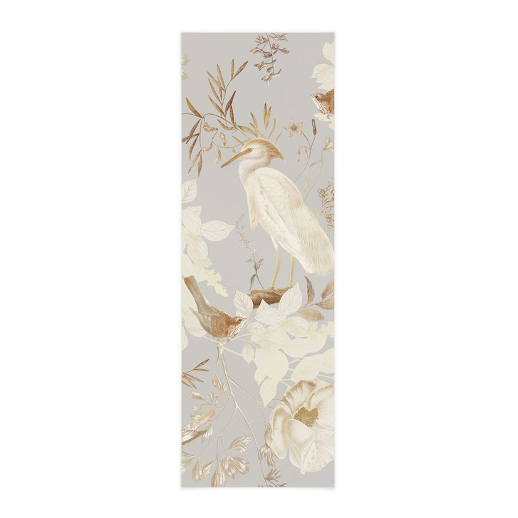 Das Panorama-Stoffbild von UN Designs bringt die Schönheit der Natur in einem schlanken, hochformatigen Design an deine Wände. Die detaillierten Abbildungen von Vögeln und Blumen in sanften Creme-, Beige- und Brauntönen harmonieren perfekt mit dem dezenten grauen Hintergrund und schaffen eine ruhige, stilvolle Atmosphäre. Dank seiner hohen, schmalen Form eignet sich dieser Stoff ideal für die geschmackvolle Dekoration schmaler Wandflächen oder Nischen und sorgt gleichzeitig für einen eleganten Effekt.
