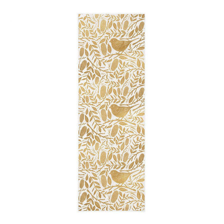 Stoffbild Weihnachten - Spatzen und Zweige in Gold - Panorama
