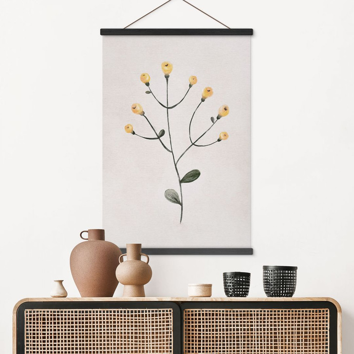 Stoffbild Zarte Pflanze mit gelben Blüten - Goed Blauw