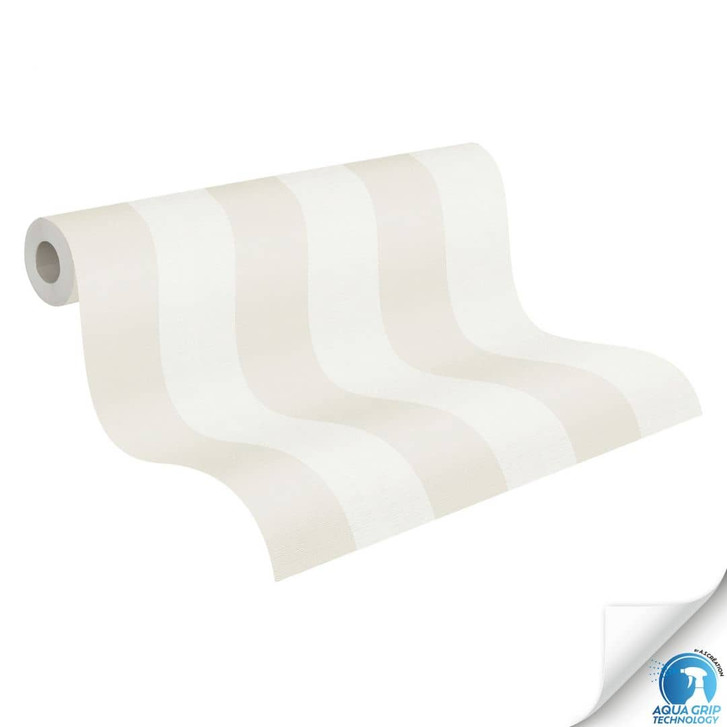 WOW - DESIGNDROP - Klassische Streifentapete in Creme-Weiß mit Textilstruktur – einfach besprühen & WOW, sie hält!