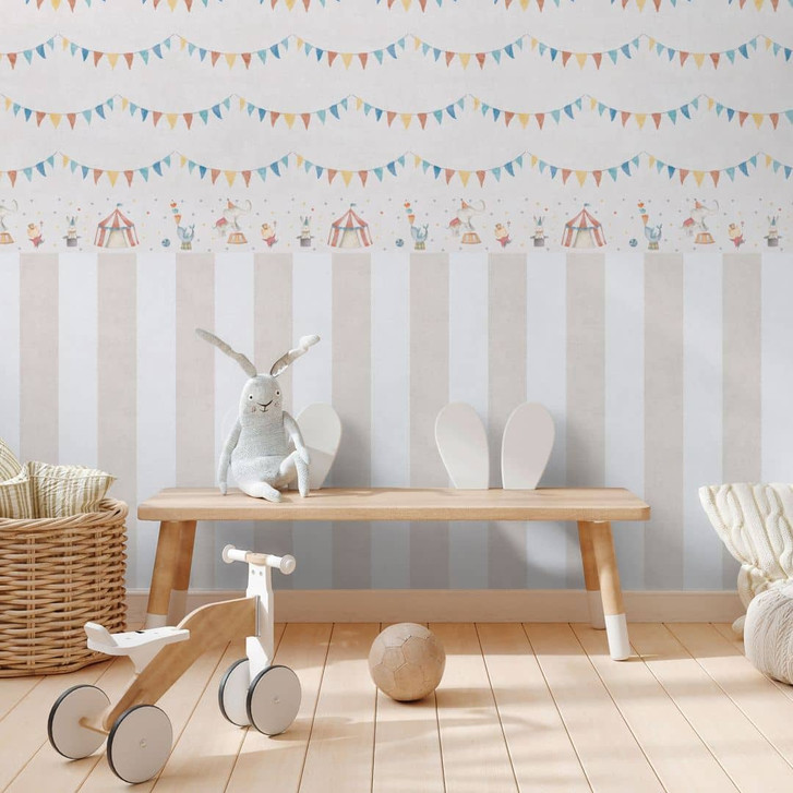 Lilly & Luis - Zeitlose Streifentapete in Beige und Weiß.