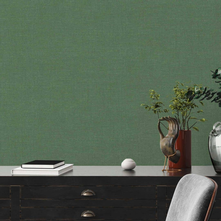 Strukturierte Uni-Tapete in Grün - Hochwertige Vliestapete mit Leinenoptik