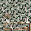 Tapete Blätter Grün Schwarz - Pflanzen Vliestapete floral modern