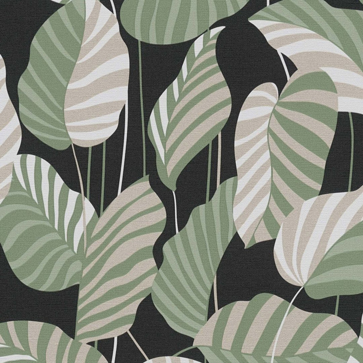 Tapete Blätter Grün Schwarz - Pflanzen Vliestapete floral modern