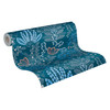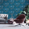 Tapete mit Blumen im Retro-Stil Blau Weiss - Florale Vliestapete mit Blättern