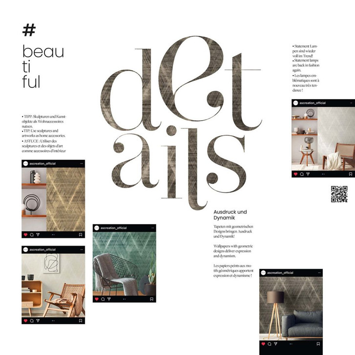 Zuhause ist kein Ort, sondern ein Gefühl! Mit der neuen Kollektion THE BATTLE OF STYLE von A.S. Création kannst du das jetzt wieder einmal beweisen und deiner Kreativität freien Lauf lassen. Die Kollektion besteht aus zehn eindrucksvollen Themen mit entsprechenden Farb- und Musterauswahlen, die für jeden Geschmack etwas bieten: ob es sich um eine moderne Interpretation botanischer Pracht oder unendliche Kombinationsmöglichkeiten verschiedener Steinoptiken handelt. Die umfangreiche Kollektion ermöglicht es jedem, seiner Kreativität Ausdruck zu verleihen und eigene Interpretationen zu schaffen. Die BOS enthält eine Vielzahl von Motiven, darunter optische Täuschungen in Betonoptik und tief wirkende Rautenmuster. Ergänzt wird die Kollektion durch verschiedene einfarbige Texturen und zarte Streifentapeten. Es gibt luftig-leichte Blumenmuster und grosse Blüten, die zum Träumen von Botanik einladen. Die Kollektion umfasst auch von Hygge inspirierte Artikel mit Blattmotiven in modischen neuen Farben. Lass dich von der Kollektion inspirieren, gestalte dein Zuhause neu und verleihe ihm einen neuen Charakter.