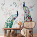 Tiertapete Bunt - Vliestapete Pfau Natur - Vogeltapete Blumen Floral Weiss