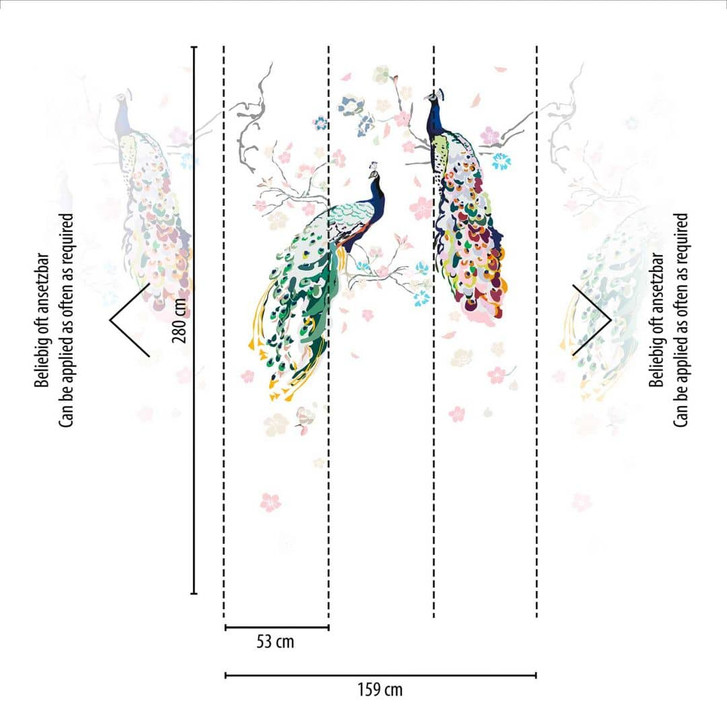 Tiertapete Bunt - Vliestapete Pfau Natur - Vogeltapete Blumen Floral Weiss