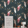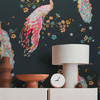 Tiertapete Schwarz Gelb - Vliestapete Pfau - Florale Tapete - Blumentapete mit Vögeln