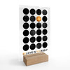 Der Holzfuss ist für alle Grössen geeignet. Lediglich das Format vom Acrylglas verändert sich je nach Grössenauswahl.