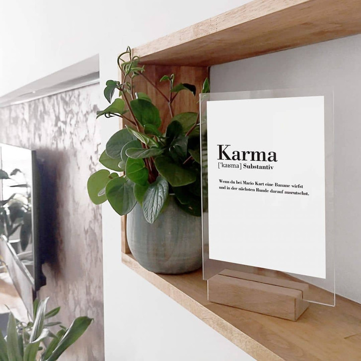 Verschönere deine vier Wände mit diesem Wandaccessoire aus Holz und verbessere deine Lebensqualität! Lass dich von unseren trendigen Deko-Ideen inspirieren und verleihe deinem Zuhause einen ganz eigenen Stil. Dieser Tischaufsteller in verschiedenen Grössen ist ein Hingucker an der Wand. Der Spruch in schwarzer Schrift erinnert täglich an Karma. Verlass dich auf deine guten Taten und Gedanken und fülle dein „Konto“ immer wieder auf. Karma kümmert sich um den Rest.