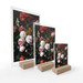 Edles Acrylglasbild zum Hinstellen aus klarem Acrylglas und massivem Holzfuss.