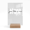Edles Acrylglasbild zum Hinstellen aus klarem Acrylglas und massivem Holzfuss.