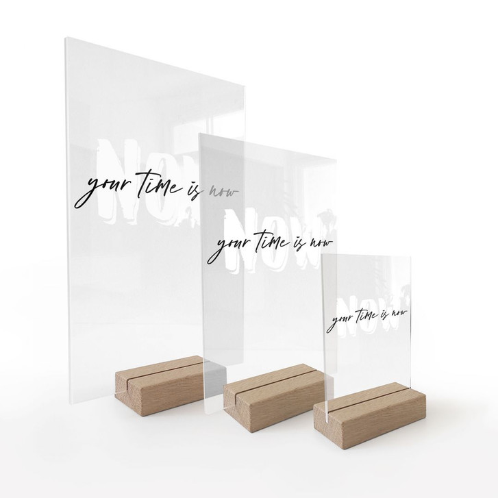 Tischaufsteller mit Spruch - Your time is now - transparent