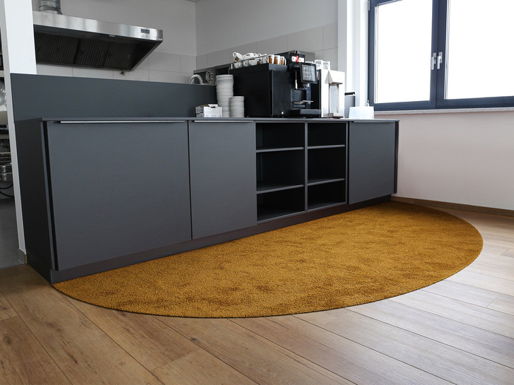 Obwohl wir eine hellere Farbe gwählt haben bleibt der Teppich dank seinen Fasern und der Struktur länger schön (ohne Saugen) als unser vorheriger Teppich (dunkles violett).