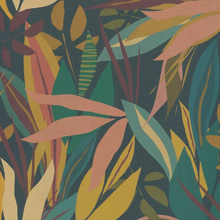 Tropen-Tapete bunt Dunkelgrün – Exotische Blätter-Tapete – Vliestapete modern