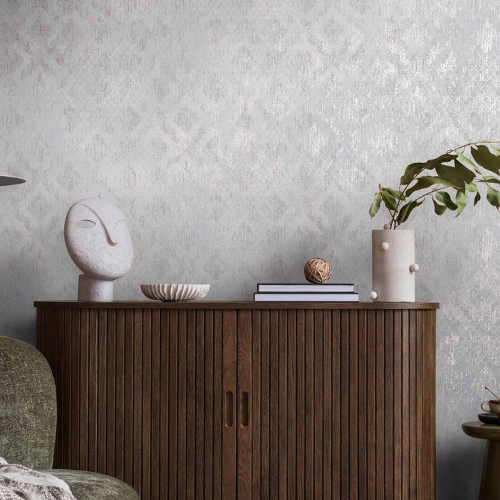 Metropolitan Stories Hot Spots - Hellgraue Vliestapete mit dezenter Ornamentstruktur