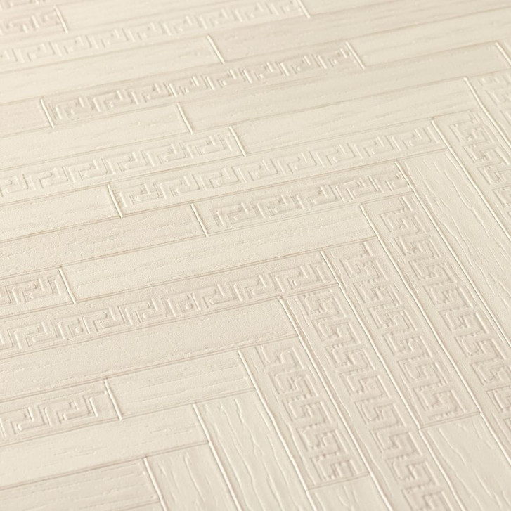 Die dezenten Mäander-Ranken und Holzdekore dieser Serie sind vom geometrischen Fischgrätmuster des Parkettbodens in der Villa Versace inspiriert – und verleihen der opulenten Kollektion einen modernen und zeitlosen Aspekt.