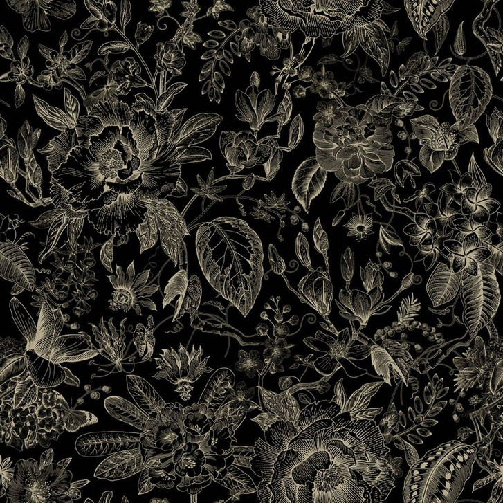Glöööckler Provence - Verleihen Sie Ihren Wänden mit unserer eleganten Vliestapete in Schwarz mit floralen Blumen und Blättern einen Hauch von Natur und Stil.
