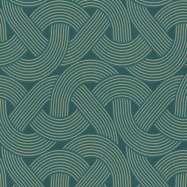 Vliestapete im Art-Deco Style Blau Gold - Grafik-Tapete mit Linienmuster