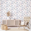 Weisse und violette abstrakte Vliestapete mit Blumen