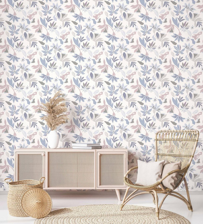 Vliestapete in abstraktem Blumenmotiv weiss, lila Floral