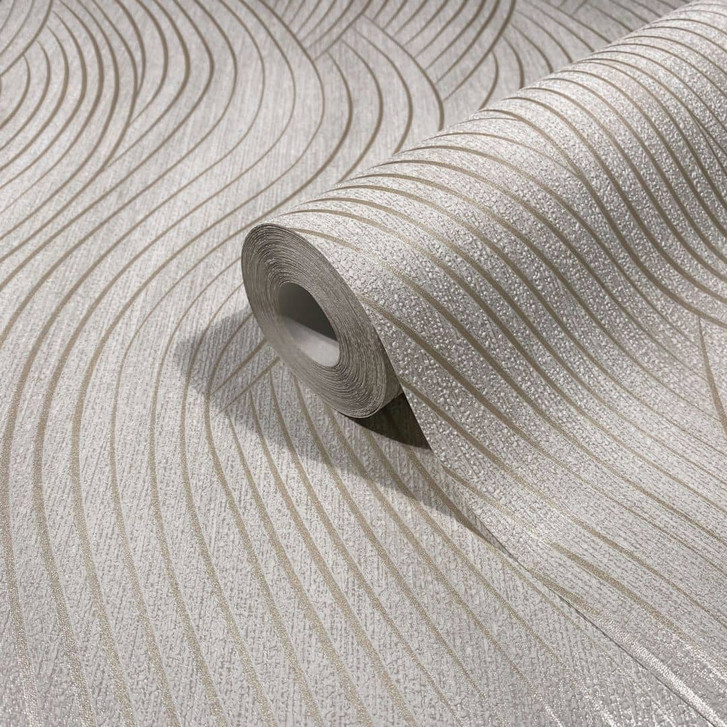 Vliestapete in Beige, graues Wellenmuster, strukturiert, grafisch, modern