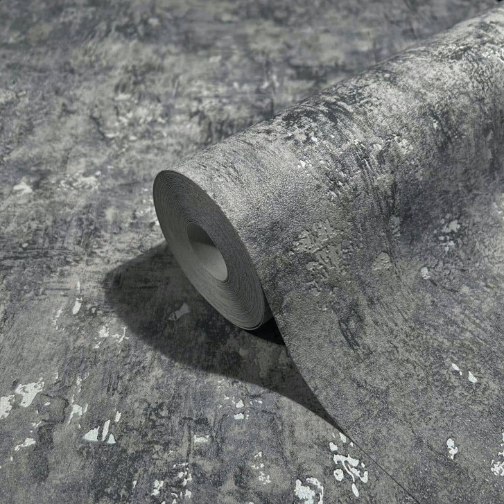 Vliestapete in glänzender Betonoptik, graue Struktur