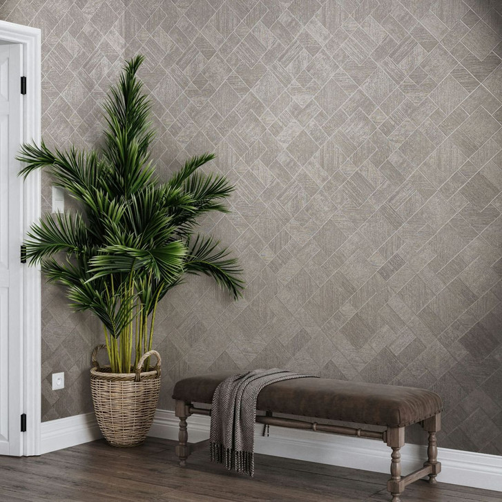Graubeige karierte geometrische Tapete mit Rautenmuster für Wohnzimmer, Schlafzimmer und Küche