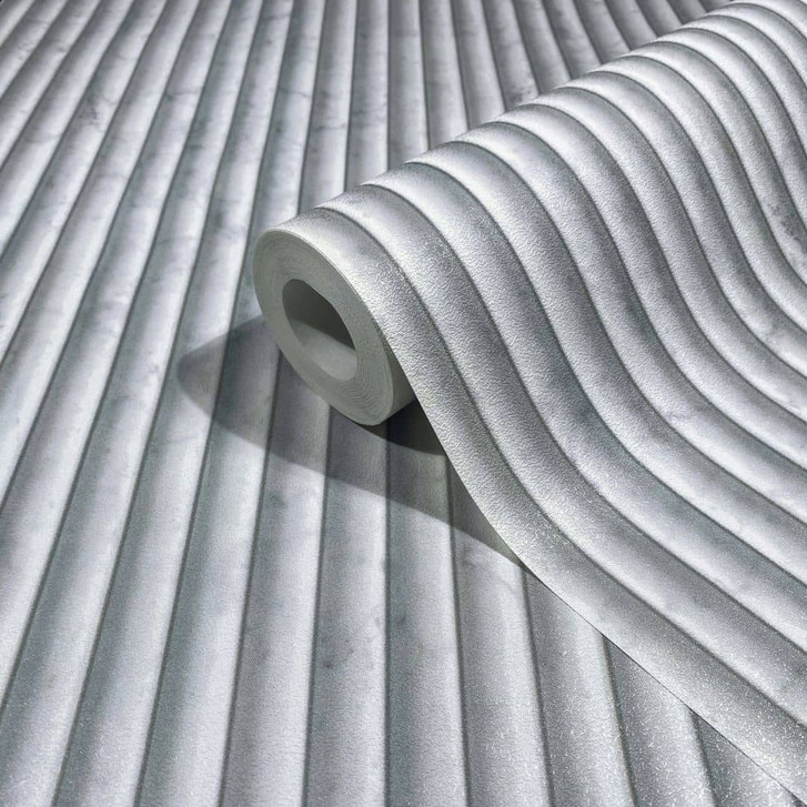 Vliestapete in grauer Marmoroptik, Steinplatte, klassischer Streifen