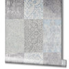 Vliestapete in strukturierter Fliesenoptik, grau, blau, Grafisch