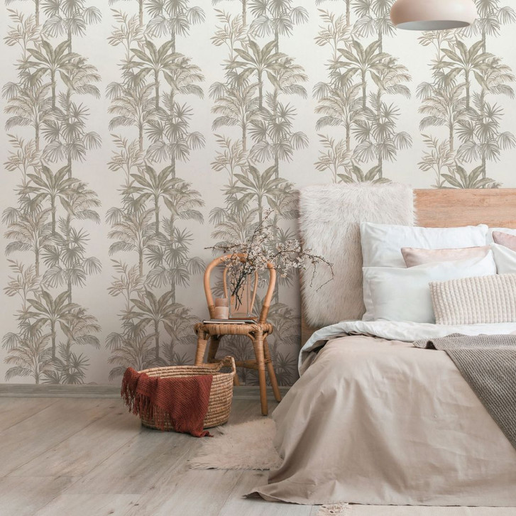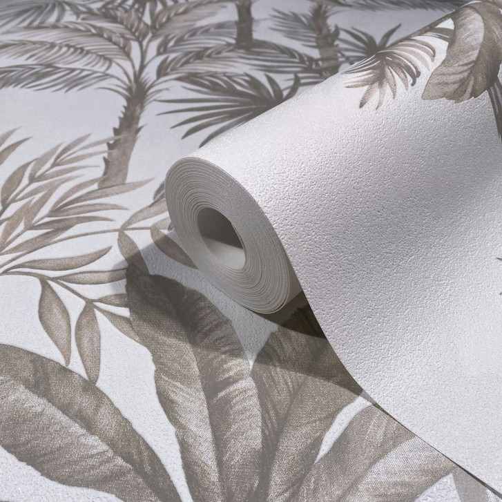 Vliestapete in Weiss Beige Bäume Blätter Dschungel Floral Natur