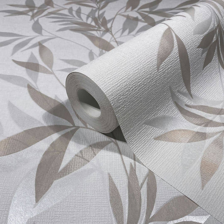 Vliestapete in weiss, beige Blattmotiv Blätteroptik Floral Natur