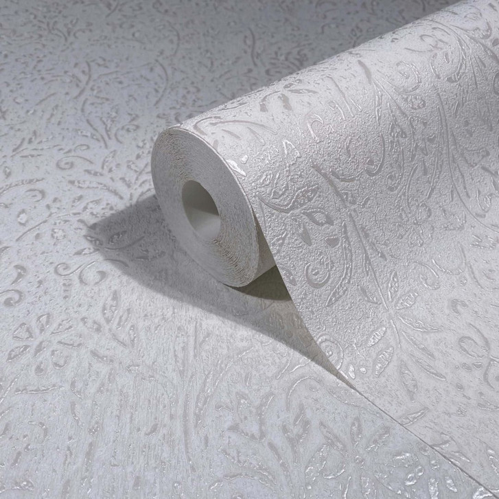 Weisse Vliestapete mit floralem Blattmotiv für Wohnzimmer, Schlafzimmer oder Küche