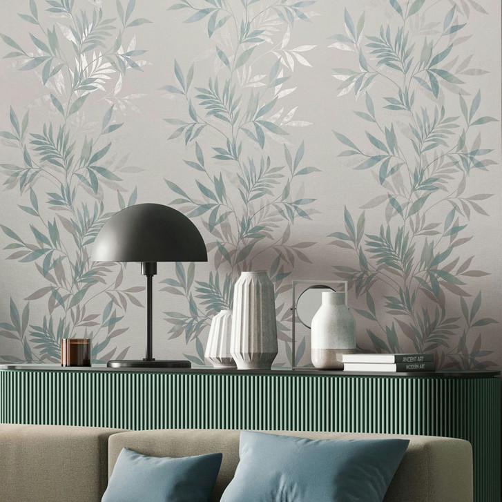 Vliestapete in weiss, grün Blattmotiv Blätteroptik Floral Natur