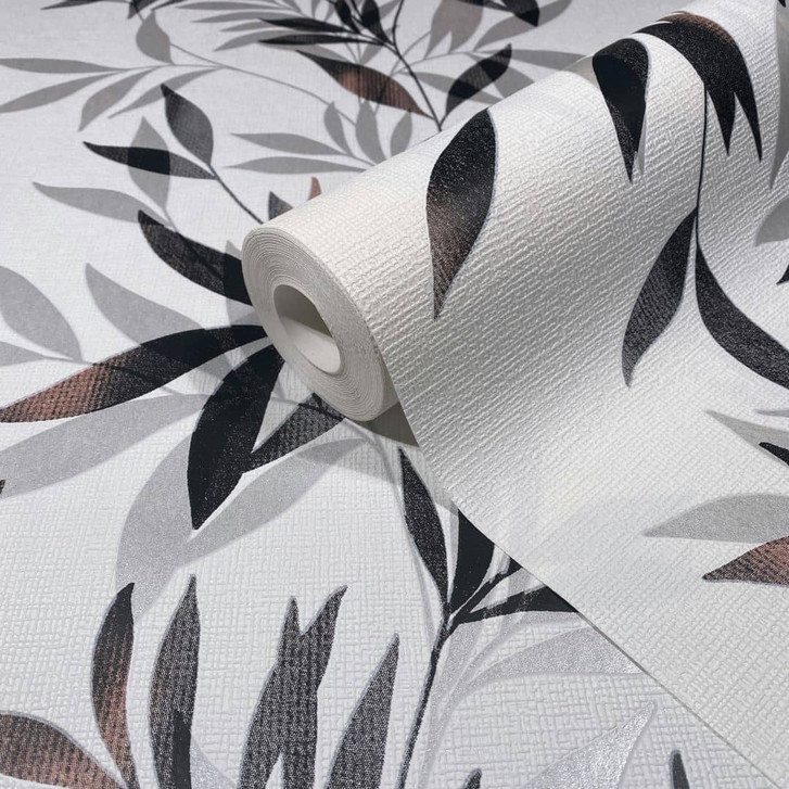 Vliestapete in weiss, schwarz Blattmotiv Blätteroptik Floral Natur