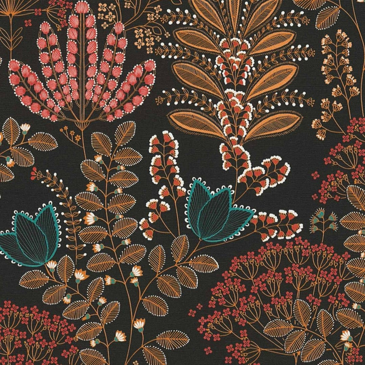 Vliestapete mit Blättern im Retro-Look Schwarz Bunt - Florale Tapete Blumen