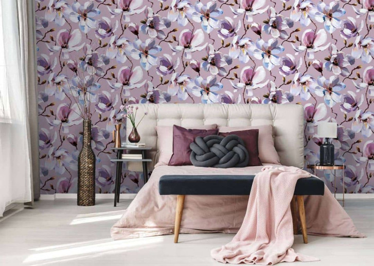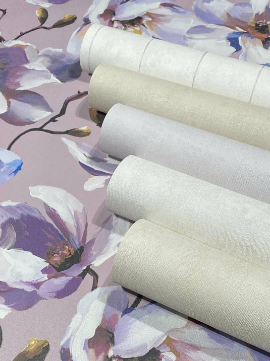 Vliestapete mit gemalten rosa und weissen Blütenblättern