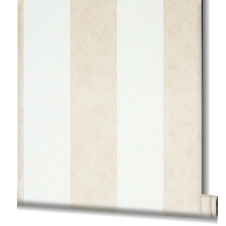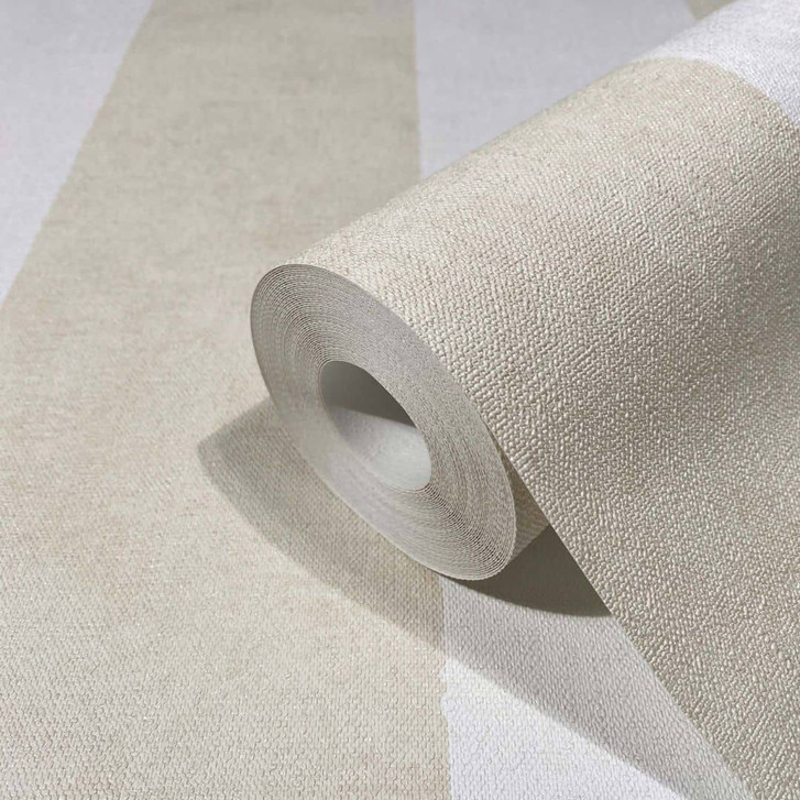 Vliestapete mit weissen und beigen Blockstreifen, strukturiert