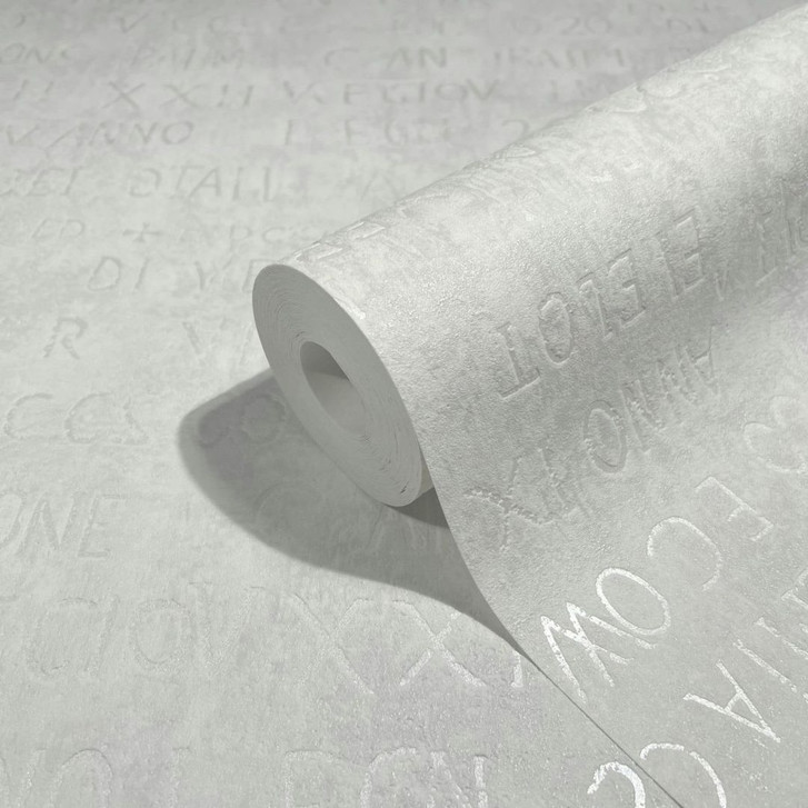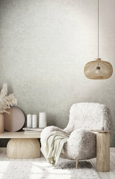 Vliestapete mit Buchstaben und Zahlen, weiss, grau, grafisch