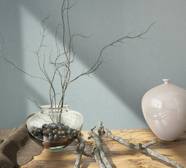 Einfarbige blaue strukturierte Vliestapete mit feiner Linienstruktur